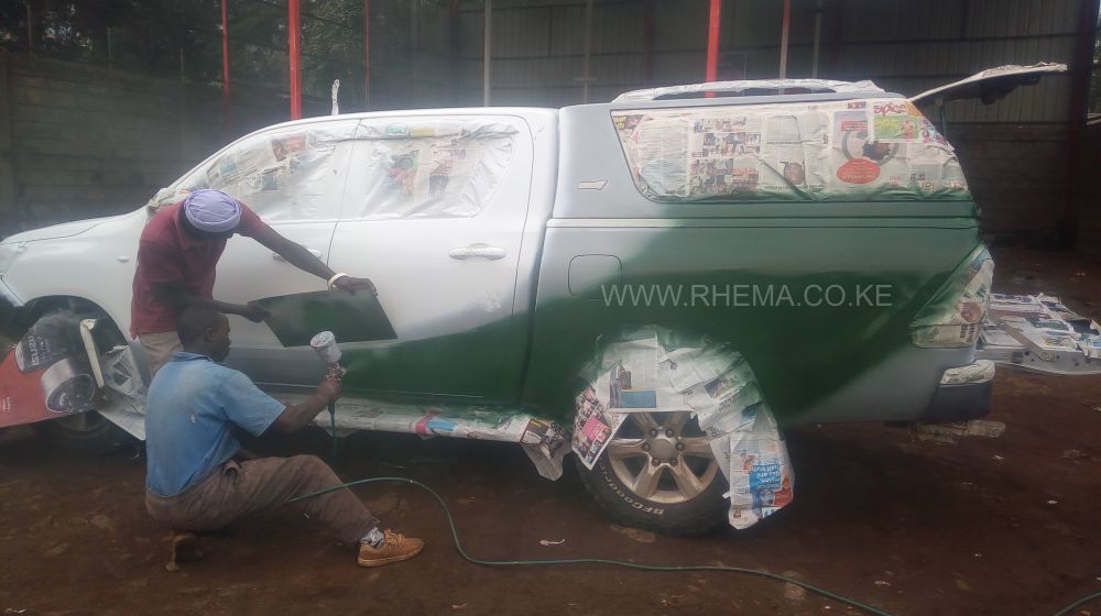 Workshop images for the vehicle branding in Nairobi for Pharmacy & Poisons Board.